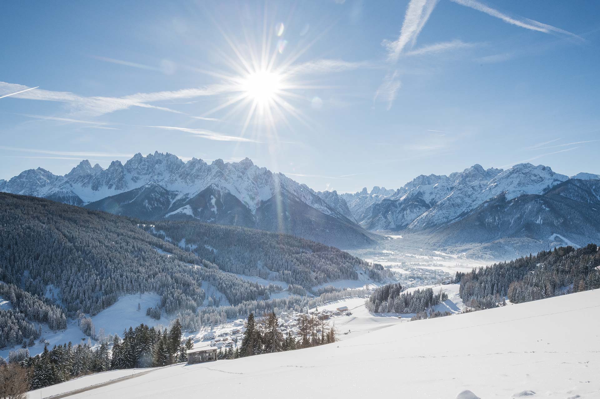 Dobbiaco is perfectly located at the crossroads of three renowned ski regions: 3 Peaks Dolomites, Kronplatz, and Cortina.
