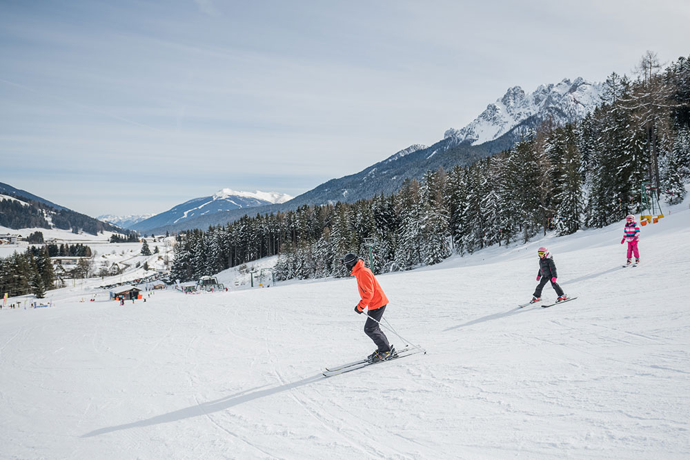 The Rienz Ski Center is ideal for beginners and perfect for families with children. Little skiers can look forward to a kids’ park with a magic carpet and mini lift.